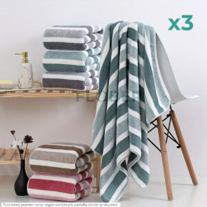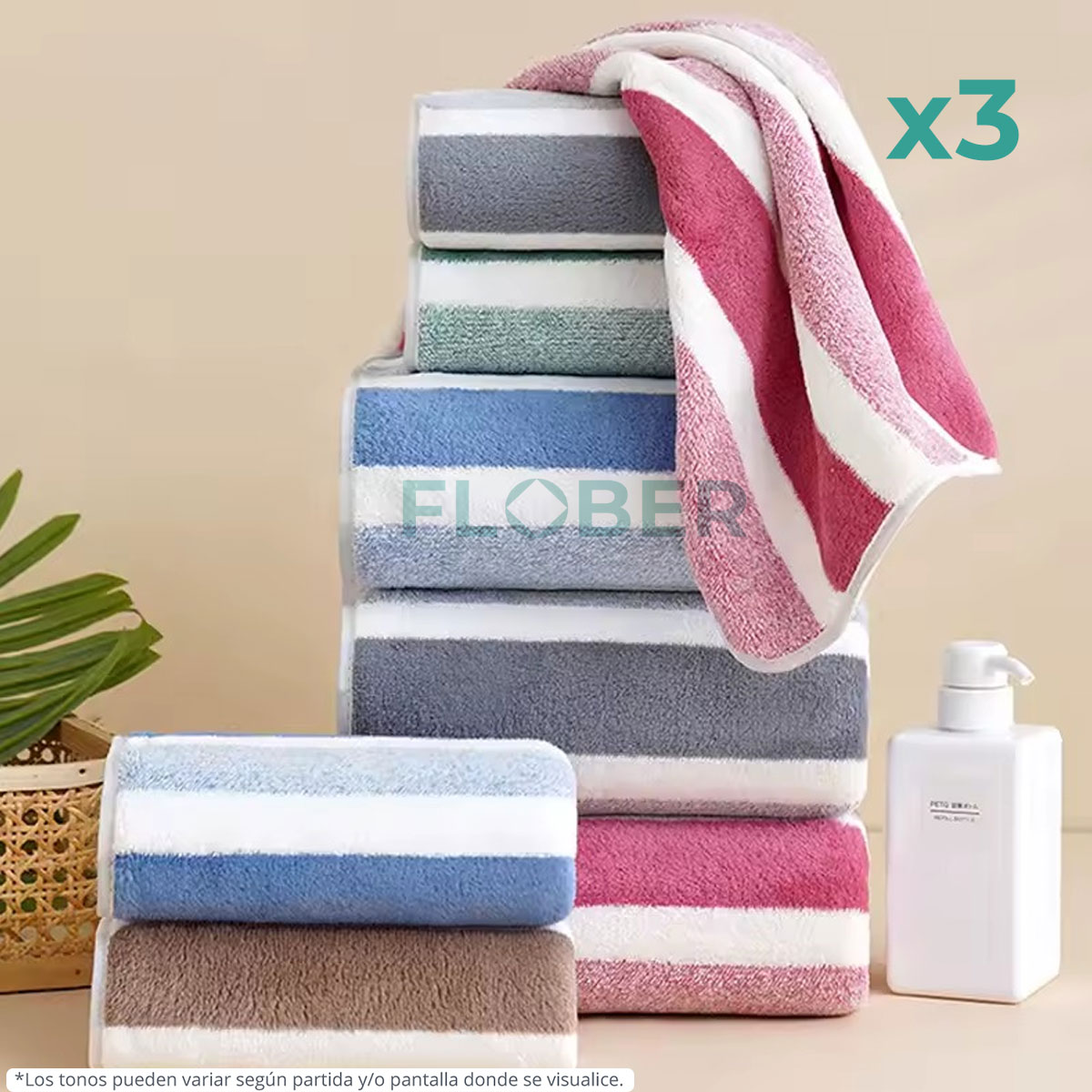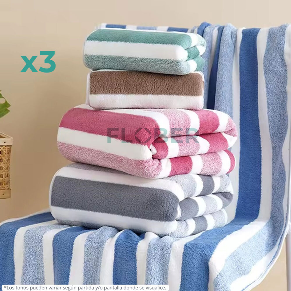 SET DE 3 TOALLAS: 1 TOALLON + 1 TOALLA + 1 TOALLITA IMPORTADAS SECADO RÁPIDO